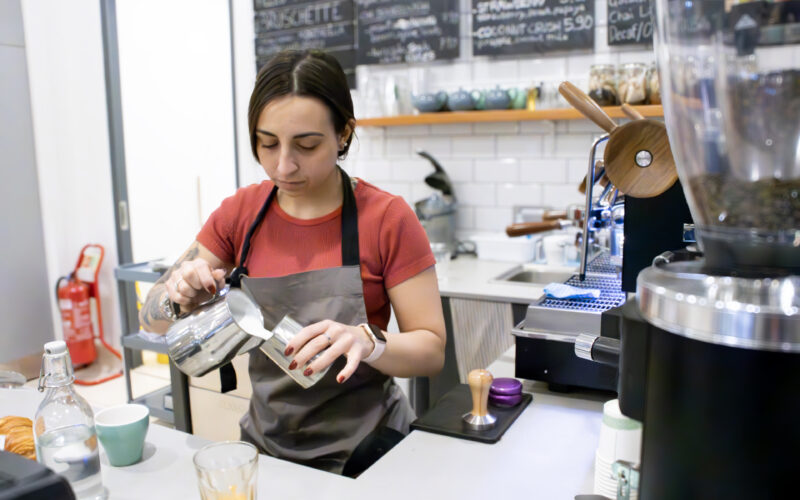 A barista making coffee at Mileto Caffé located within the Pears Building.